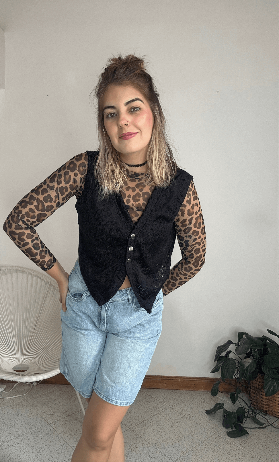 Chaleco elaborado en poliester, con botones de golpe delanteros