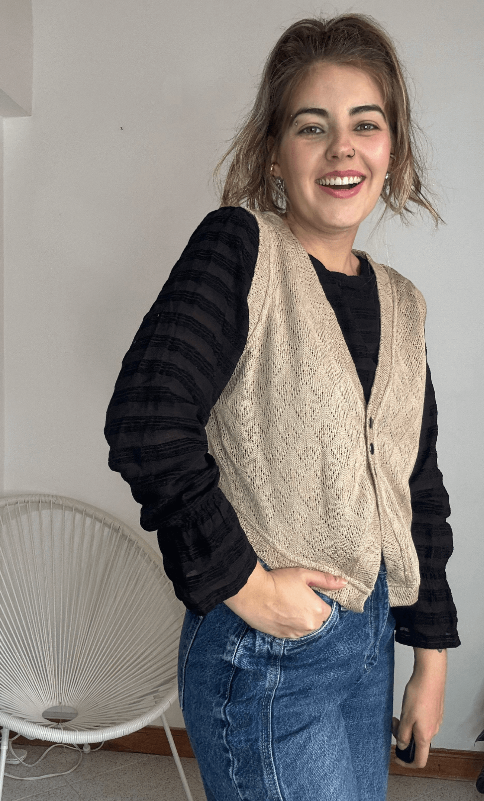 Chaleco elaborado en poliester, con botones de golpe delanteros