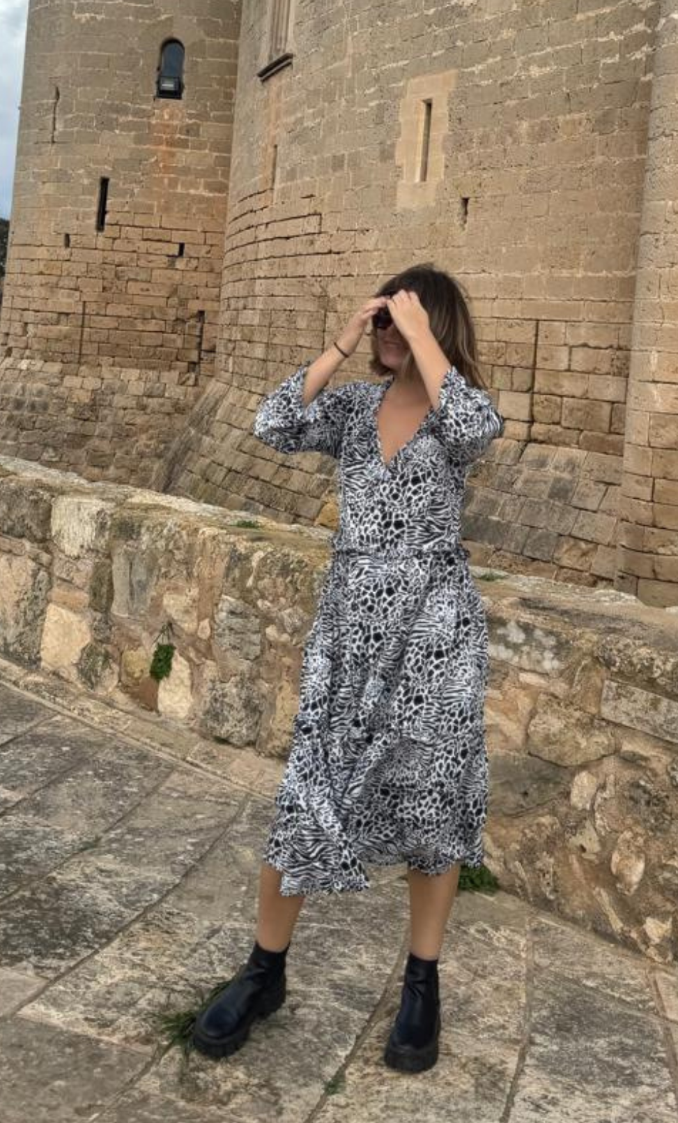 Elaborado en Chalís rayón, con detalle bolero en mangas, cuello y cintura.